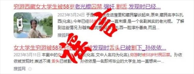 ·西藏網警發(fā)布網絡謠言案例:杜撰“女大學生窮游遭囚禁性侵”3人被查。
