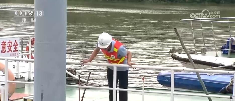 在深圳河皇崗碼頭段,水務部門的工作人員正在進行臺風前的巡查工作。臺風來臨前,河流船只必須全部回港避險并進行加固處理,沿河的各項工程必須停工。
