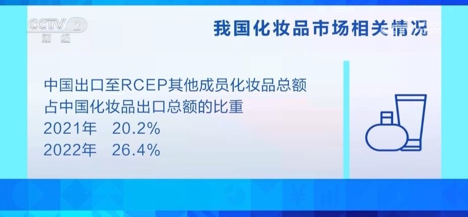 日前發(fā)布的《RCEP化妝品市場研究報(bào)告(東盟篇)》指出,2022年中國出口至RCEP其他成員的化妝品總額從2021年的9.8億美元升至15.1億美元,占中國化妝品出口總額的比重從20.2%上升至26.4%。