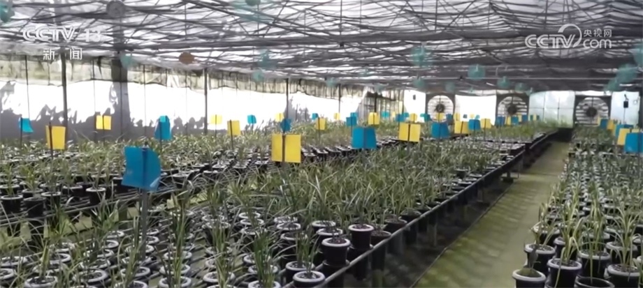 總臺央視記者 陳燁煒:今天室外的溫度在38℃左右,但是在蘭花的種植棚里是28℃左右,為什么室外和室內(nèi)的溫度能相差10℃?原因就在于在這個棚里面被安裝上了一系列的智能設(shè)備,一旦里面的溫度超過了設(shè)定值,這里的水簾、噴霧設(shè)備就會自動開啟,來進(jìn)行一系列的調(diào)節(jié),以此來達(dá)到這些蘭花最適宜生長的一個環(huán)境。