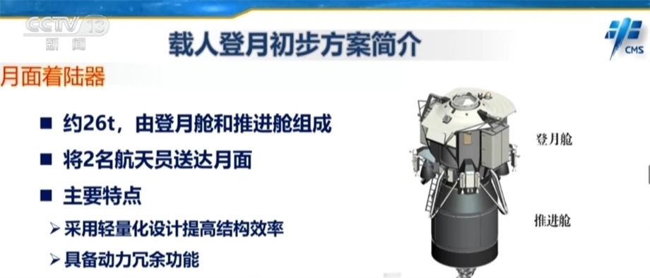 目前,我國載人登月的初步方案是:采用兩枚運載火箭分別將月面著陸器和載人飛船送至地月轉移軌道,飛船和著陸器在環(huán)月軌道交會對接,航天員從飛船進入月面著陸器。其后,月面著陸器將下降著陸于月面預定區(qū)域,航天員登上月球開展科學考察與樣品采集。在完成既定任務后,航天員將乘坐著陸器上升至環(huán)月軌道與飛船交會對接,并攜帶樣品乘坐飛船返回地球。為完成這項任務,我國科研人員正在研制長征十號運載火箭、新一代載人飛船、月面著陸器、載人月球車等裝備。