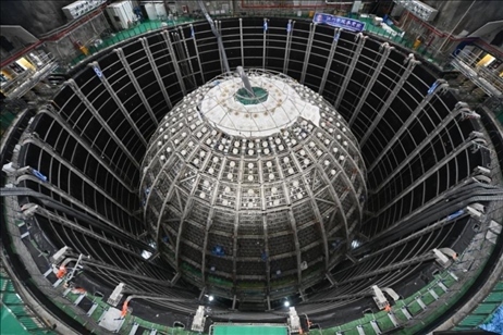 圖為江門中微子地下實驗室中微子探測裝置。(中國科學(xué)院高能物理研究所供圖)