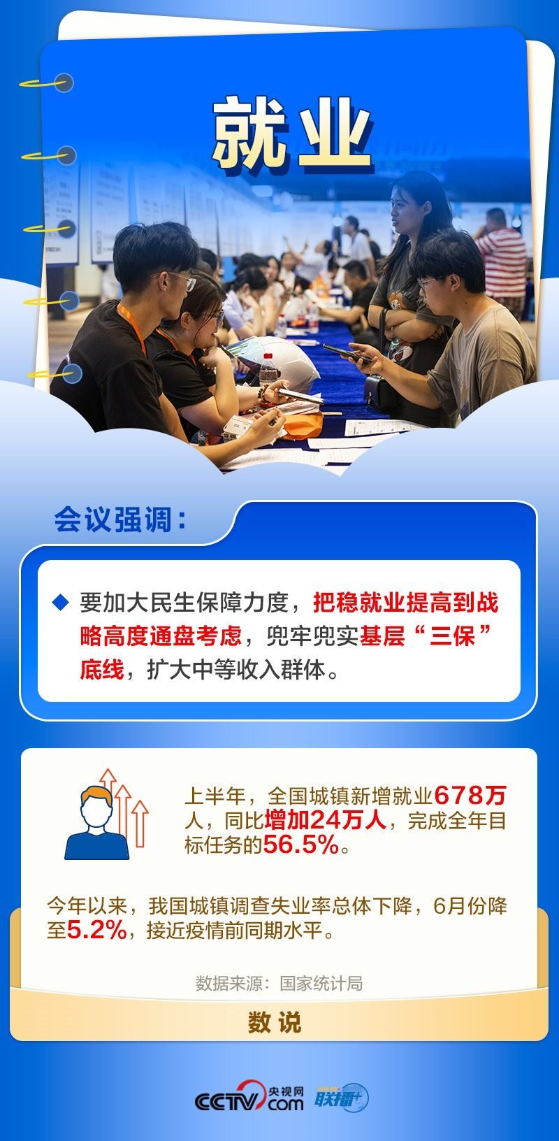 就業(yè)是最大的民生,也是最基本的民生。黨中央一直高度關注就業(yè)形勢。今年以來,各地區(qū)各部門多措并舉穩(wěn)存量、擴增量、提質量、兜底線,落實落細就業(yè)優(yōu)先政策,完善公共就業(yè)服務。