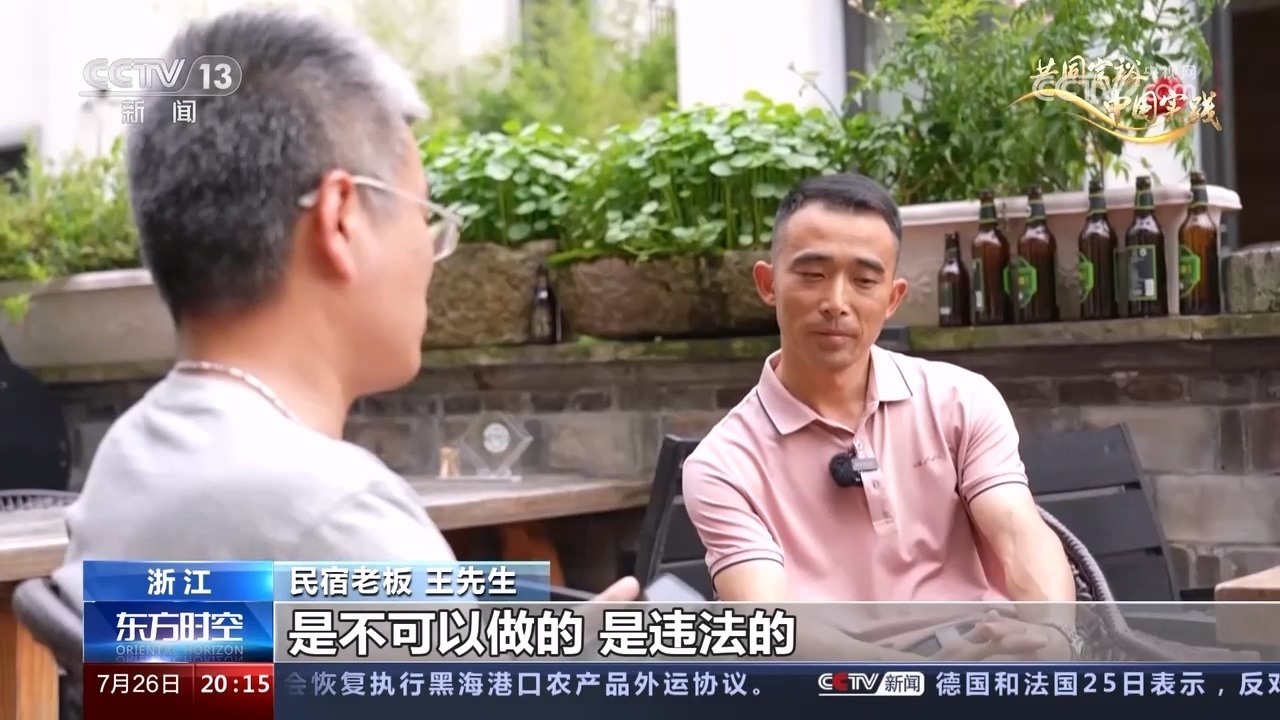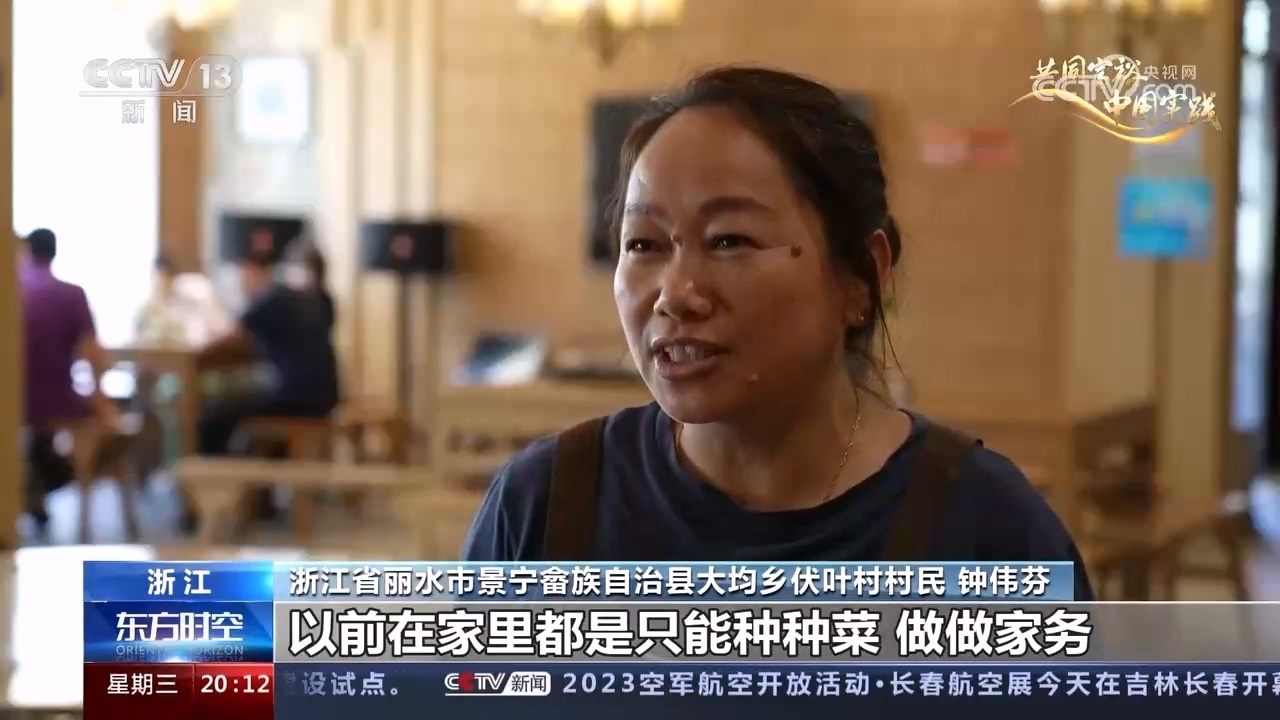 浙江省麗水市景寧畬族自治縣大均鄉(xiāng)伏葉村村民 鐘偉芬:以前在家里都只能種種菜、做家務(wù),別的一分錢都掙不來,現(xiàn)在在家門口(就業(yè))。這里的服務(wù)員全部都是我們本村的,五六十歲了,出去打工也沒人要,在這里干干服務(wù)員一個(gè)月還能收入三千,這也很好的。