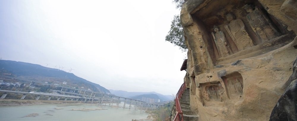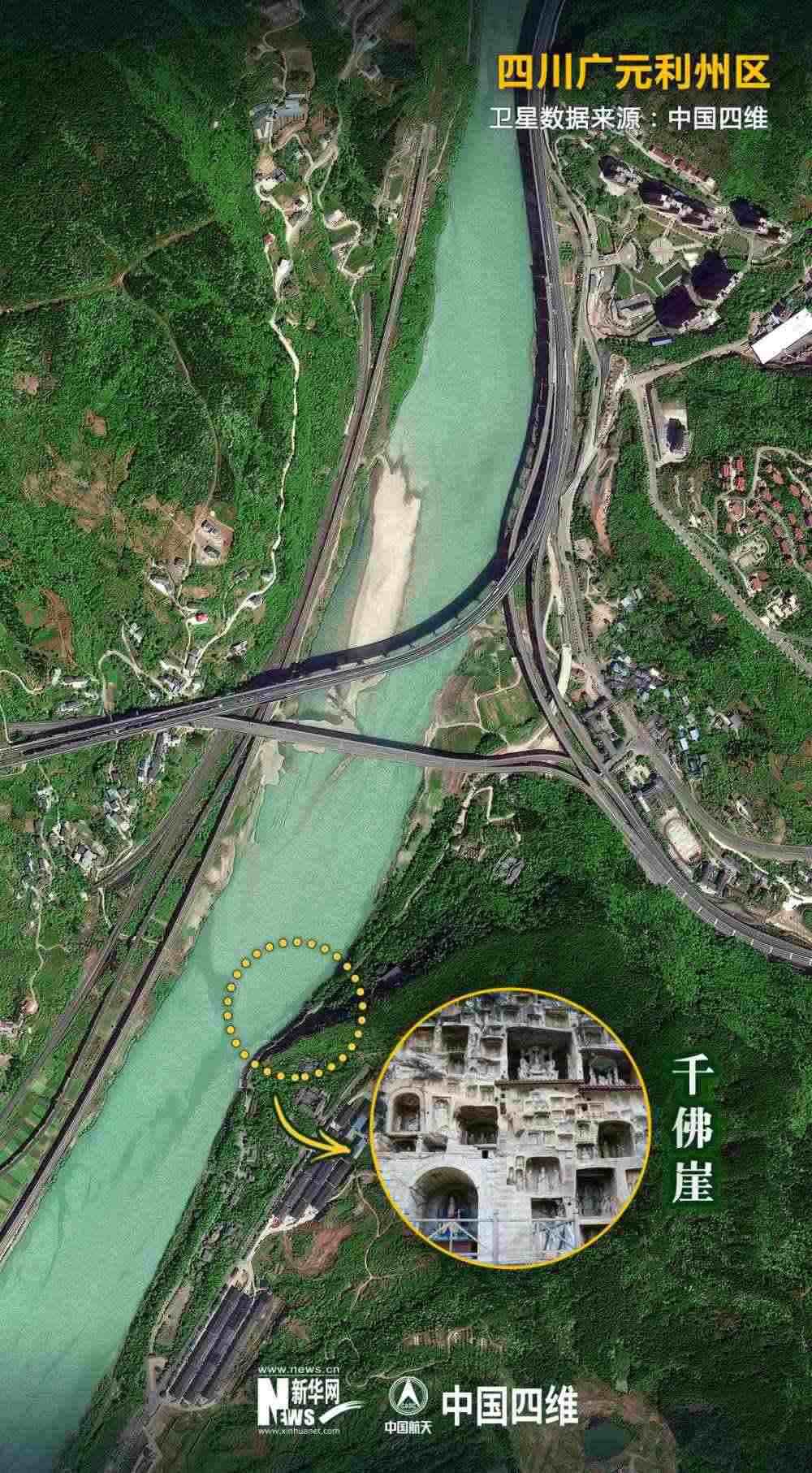 值得關注的是,就在千佛崖的河對岸,幾條現(xiàn)代化交通網(wǎng)錯落有致地交織在一起。今日的廣元是名副其實的“交通博物館”。老川陜路、京昆高速、寶成鐵路、西成高鐵、嘉陵江航道在這里交織“奔騰”。橫渡嘉陵江,仿佛穿越古今。