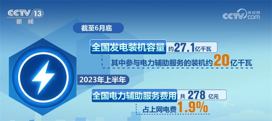 電力輔助服務是指為維護電力系統(tǒng)安全穩(wěn)定運行、保障電能質量、促進新能源消納,由市場運營機構統(tǒng)一組織采購調用的調峰、調頻、備用等系統(tǒng)調節(jié)服務。截至6月底,全國發(fā)電裝機容量約27.1億千瓦,其中參與電力輔助服務的裝機約20億千瓦。2023年上半年,全國電力輔助服務費用共278億元,占上網(wǎng)電費1.9%。