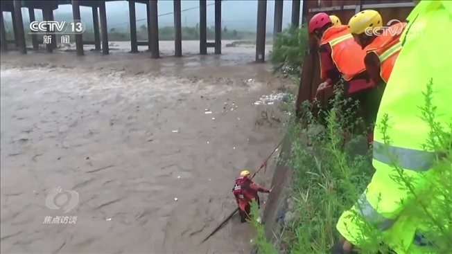 河北武安市南環(huán)東路消防救援站政治指導(dǎo)員田明:“救援人員到達(dá)現(xiàn)場(chǎng)以后,發(fā)現(xiàn)現(xiàn)場(chǎng)情況十分危急,首先是被困車輛和人員處于河道正中央,距兩岸均有50余米,二是水流十分湍急,而且水中雜物很多,嚴(yán)重影響施救?!?/p>