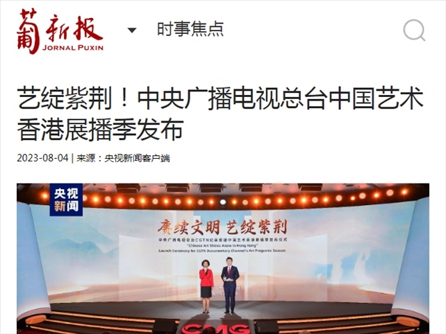 近期,中央廣播電視總臺(tái)CGTN紀(jì)錄頻道“賡續(xù)文明 藝綻紫荊”中國(guó)藝術(shù)香港展播季在京港兩地共同發(fā)布。30余部展現(xiàn)中華優(yōu)秀傳統(tǒng)文化的總臺(tái)紀(jì)錄片、專(zhuān)題片正陸續(xù)通過(guò)CGTN紀(jì)錄頻道在香港播出。