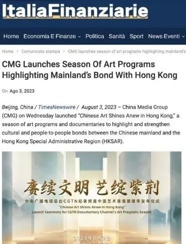 總臺(tái)CGTN在官網(wǎng)發(fā)布的《中國(guó)藝術(shù)香港展播季 讓觀眾零距離觸摸源遠(yuǎn)流長(zhǎng)的中華文明》稿件被來(lái)自美國(guó)、英國(guó)、法國(guó)、澳大利亞、韓國(guó)、加拿大、意大利等20個(gè)國(guó)家和地區(qū)的799家海外主流網(wǎng)絡(luò)媒體轉(zhuǎn)載。美國(guó)《國(guó)際日?qǐng)?bào)》《歐洲僑報(bào)》《葡新報(bào)》《非洲時(shí)報(bào)》《委國(guó)僑報(bào)》、新西蘭格局傳媒網(wǎng)站、歐僑網(wǎng)和日本華商網(wǎng)等海外華文媒體也以多種形式刊載轉(zhuǎn)發(fā)了相關(guān)報(bào)道。