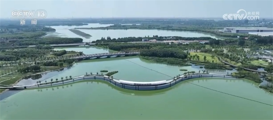 總臺(tái)記者 毛?。?/strong>這里是蘇州吳江和上海青浦交界處的元蕩湖,我所走的這座步行橋總長(zhǎng)585米,這也是遠(yuǎn)近聞名網(wǎng)紅打卡地。除了風(fēng)景美麗之外,還有一個(gè)原因。我現(xiàn)在還是在上海,往前走兩步,走過這行字,我就到了蘇州,完全沒有兩個(gè)城市之間的陌生感。這座步行景觀橋也是長(zhǎng)三角生態(tài)綠色一體化發(fā)展示范區(qū)建設(shè)的第一座跨省級(jí)行政區(qū)的步道橋。在旁邊,還有連接上海、蘇州兩地的公路橋和滬蘇湖鐵路橋也都建設(shè)好了,城市之間的交流越來(lái)越緊密。