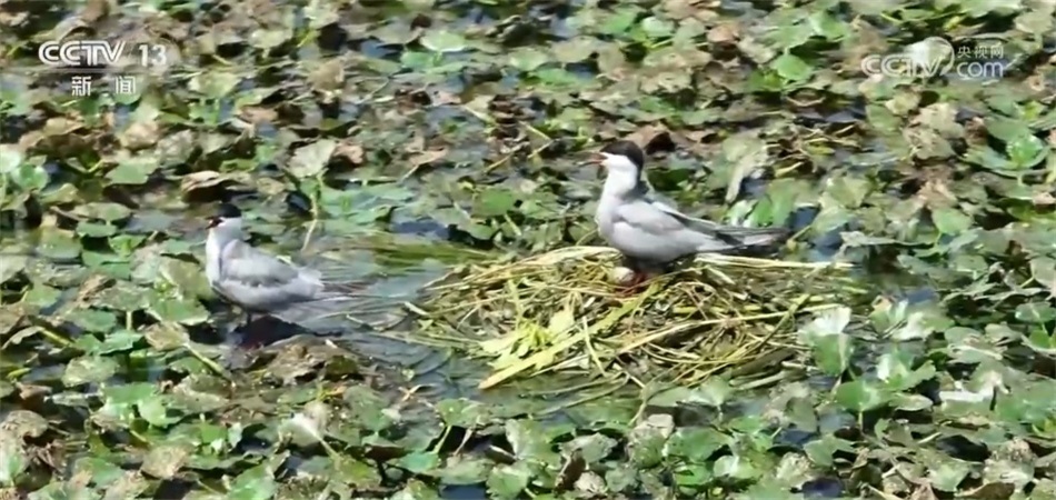 比如,兩地工作人員實(shí)現(xiàn)了聯(lián)合巡河、管護(hù)、治理。元蕩湖生態(tài)岸線的相關(guān)建設(shè),包括我所在的這個(gè)公園和步行橋也是兩地統(tǒng)一審批、接力建設(shè)起來(lái)的。目前,元蕩湖水質(zhì)已經(jīng)達(dá)到國(guó)家考核目標(biāo),生態(tài)岸線占比超過80%。在湖心的位置有一處水草聚集區(qū)域,船是不會(huì)靠近的,這是人為劃定的水上鳥兒的保育區(qū),能看見不少水鳥在那里嬉戲飛翔。鏡頭拉近,有的鳥兒已經(jīng)在這里筑巢產(chǎn)卵,把家安在了元蕩湖,水質(zhì)好不好,鳥兒最有發(fā)言權(quán)?,F(xiàn)在,元蕩湖在水系連通、河道清障、岸坡整治、水源涵養(yǎng)等方面實(shí)現(xiàn)了統(tǒng)一推進(jìn)。