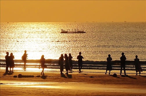 8月24日,青島秋高氣爽,眾多市民游客來到西海岸新區(qū)金沙灘,觀看海上日出美景。