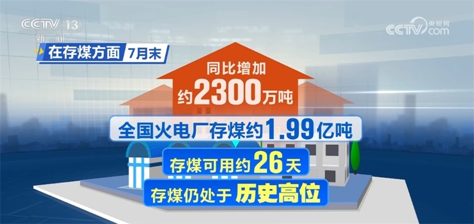 在存煤方面,7月末,全國(guó)火電廠存煤約1.99億噸,同比增加約2300萬(wàn)噸,存煤可用約26天,存煤仍處于歷史高位。