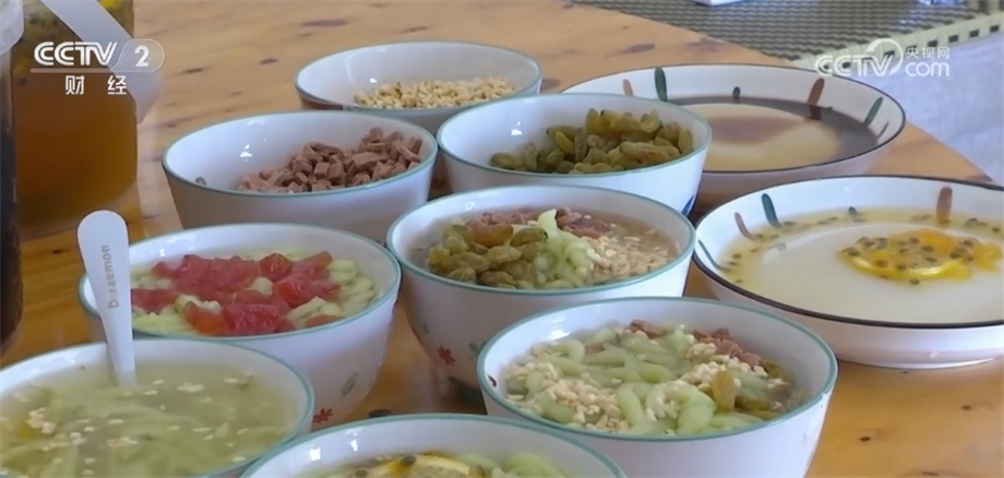 此外,根據(jù)個人的口味還可以加入西瓜、葡萄干等輔料,就做成了一道道可口的甜品。