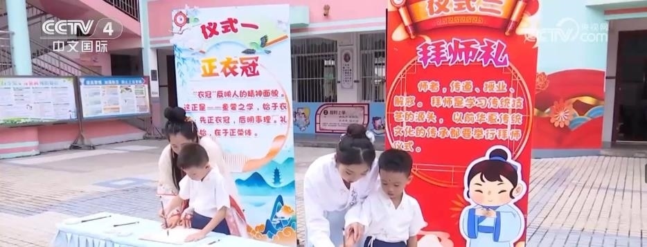 8月28日,廣西南寧市中小學(xué)校、幼兒園迎來(lái)了秋季學(xué)期。在南寧市新陽(yáng)路小學(xué),300多名一年級(jí)新生參加了一場(chǎng)中華傳統(tǒng)入學(xué)“開筆禮”。同學(xué)們身著傳統(tǒng)服飾,依次進(jìn)行禮正衣冠、行拜師禮、朱砂點(diǎn)痣、擊鼓明志、開筆啟蒙等傳統(tǒng)儀式。