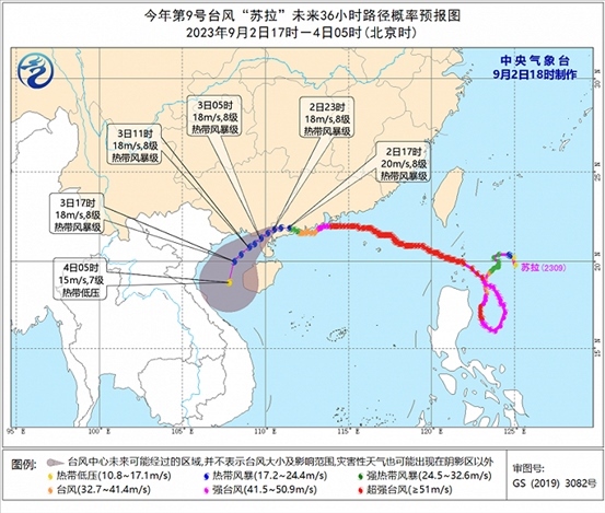 預(yù)計,“蘇拉”將以每小時15-20公里的速度向西偏南方向移動,將于3日上午移入北部灣海面,強度逐漸減弱。