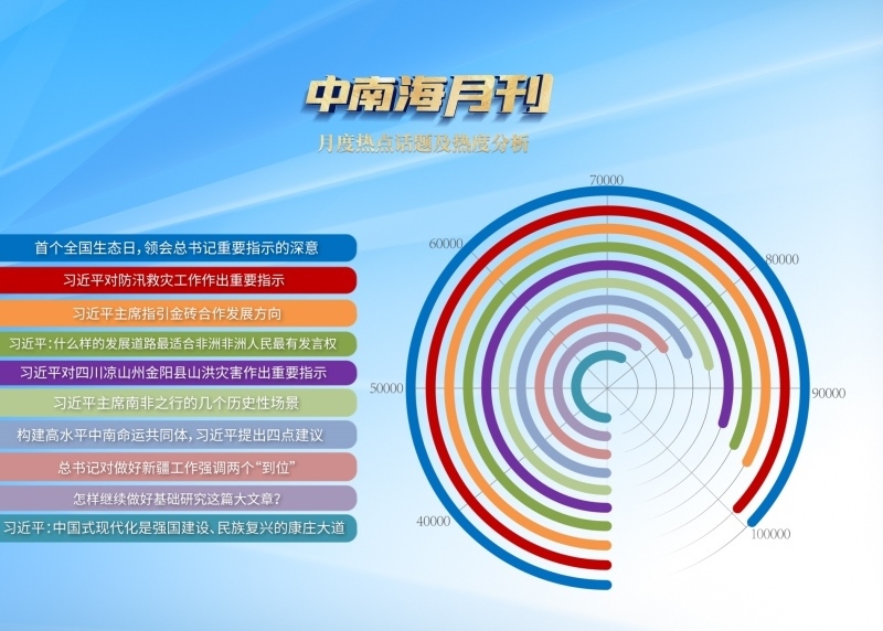 中國(guó)式現(xiàn)代化是強(qiáng)國(guó)建設(shè)、民族復(fù)興的康莊大道,康莊大道并不等于一馬平川。就像習(xí)近平總書(shū)記所強(qiáng)調(diào)的,“要把中國(guó)式現(xiàn)代化5個(gè)方面的中國(guó)特色變?yōu)槌晒?shí)踐,把鮮明特色變成獨(dú)特優(yōu)勢(shì),需要付出艱巨努力”。央視網(wǎng)“智聞”系統(tǒng)提取分析8月全網(wǎng)時(shí)政新聞熱點(diǎn)顯示,總書(shū)記對(duì)推進(jìn)中國(guó)式現(xiàn)代化的最新部署吸引全網(wǎng)目光。