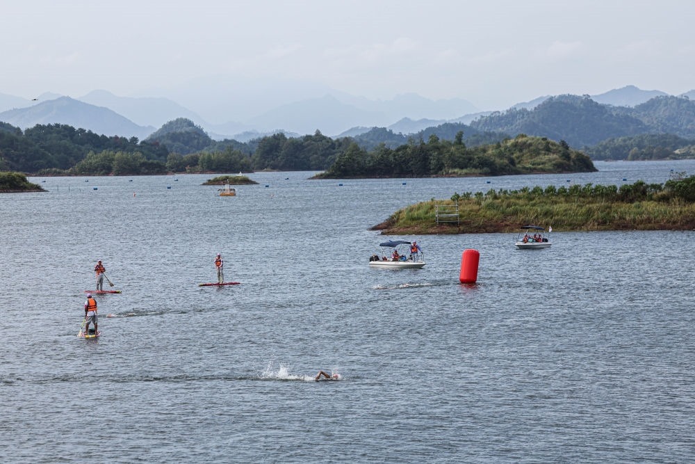 杭州主城區(qū)西南方約200公里,淳安縣千島湖秀水畔的界首鄉(xiāng),水域廣闊、港灣曲折,沿線騎行、徒步的游客絡(luò)繹不絕。杭州亞運(yùn)會(huì)自行車、鐵人三項(xiàng)等比賽在這里如火如荼地展開(kāi)。