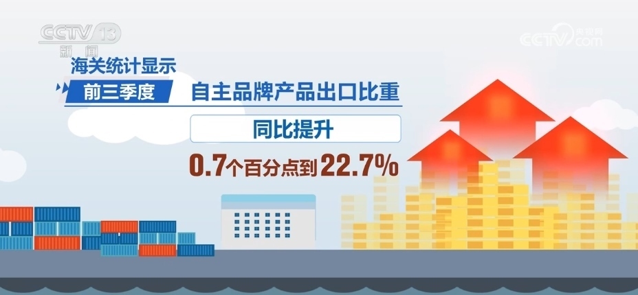 海關(guān)統(tǒng)計顯示,前三季度,我國民營企業(yè)月度進(jìn)出口增速高于整體,自主品牌產(chǎn)品出口比重同比提升0.7個百分點(diǎn)到22.7%。