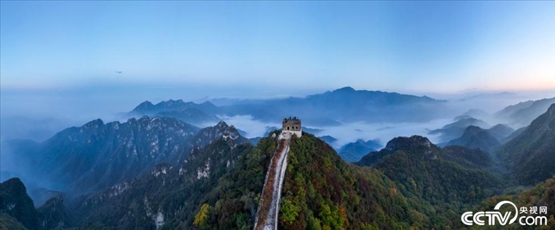 北京,箭扣長(zhǎng)城周?chē)鷮恿直M染,云霧縹緲,宛如仙境。