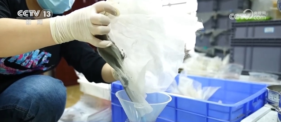 文物碎片提取出來后,很多都不到指甲蓋大小。工作人員需要將它們進行編號,再拍照、存檔,隨后進入初步的清理階段。