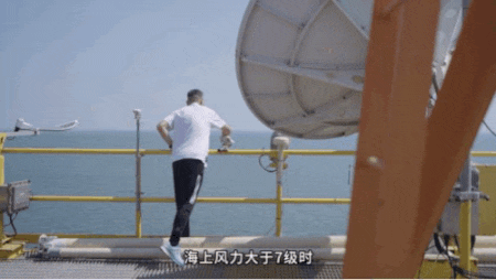 貓著腰、頂著強(qiáng)風(fēng)登上最高處進(jìn)行操作