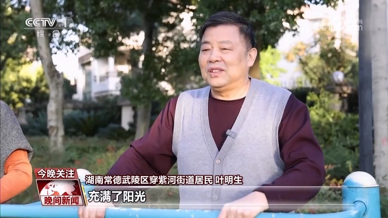 湖南常德武陵區(qū)穿紫河街道居民 葉明生:我們老年人現(xiàn)在的生活確實(shí)好過了,充滿了陽光,社區(qū)到處都有了體育器材、有運(yùn)動(dòng)場所、有健身場所,現(xiàn)在我們玩得多開心啊。