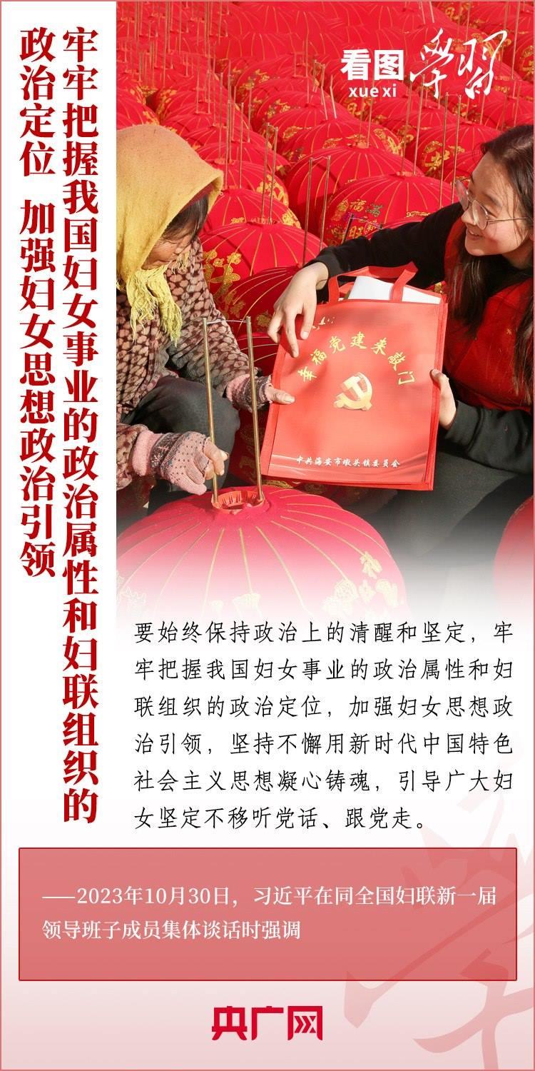 10月30日下午,習(xí)近平總書記同全國(guó)婦聯(lián)新一屆領(lǐng)導(dǎo)班子成員集體談話并發(fā)表重要講話??倳洀?qiáng)調(diào),要堅(jiān)定不移走中國(guó)特色社會(huì)主義婦女發(fā)展道路,激勵(lì)廣大婦女自尊自信、自立自強(qiáng),奮進(jìn)新征程、建功新時(shí)代,為中國(guó)式現(xiàn)代化建設(shè)貢獻(xiàn)巾幗智慧和力量。一起來學(xué)習(xí)!
