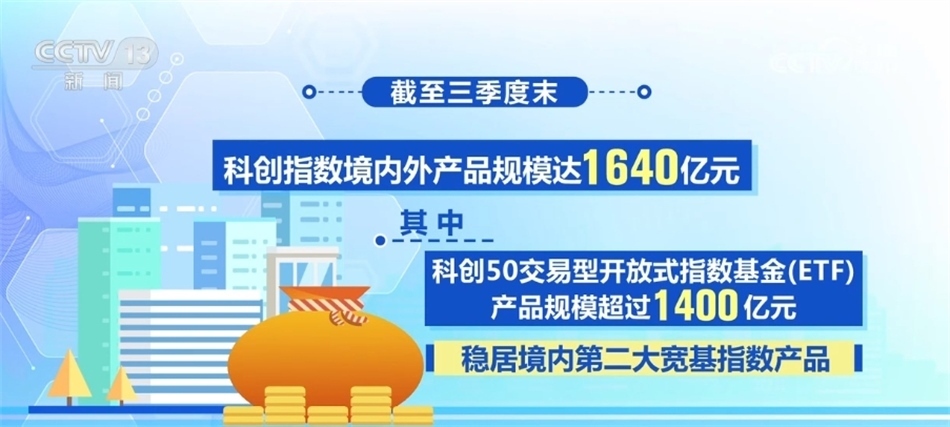 數(shù)據(jù)顯示,截至三季度末,科創(chuàng)指數(shù)境內(nèi)外產(chǎn)品規(guī)模達(dá)1640億元,其中,科創(chuàng)50交易型開(kāi)放式指數(shù)基金(ETF)產(chǎn)品規(guī)模超過(guò)1400億元,穩(wěn)居境內(nèi)第二大寬基指數(shù)產(chǎn)品。