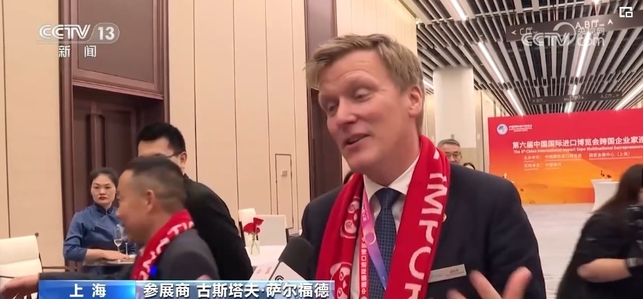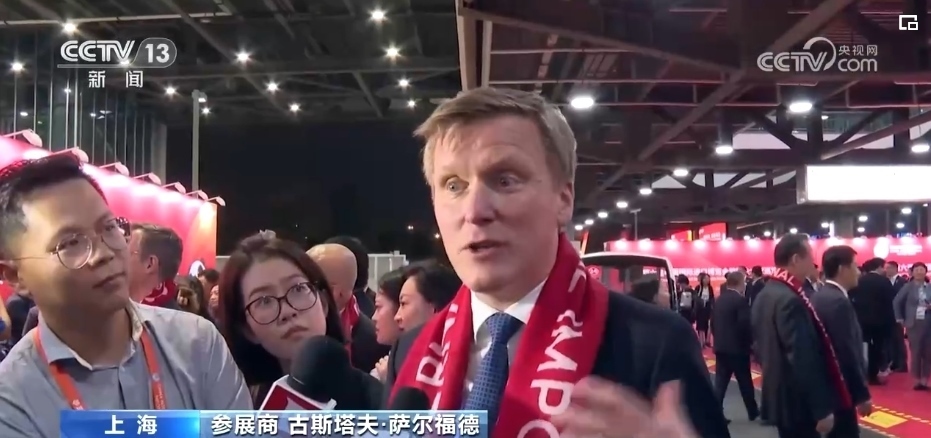 參展商 胡凱誠:我們今天第一次見面,而且我們發(fā)現(xiàn),我們都在中國待了42年。每個(gè)人都因?yàn)橥瑯拥脑騺淼竭@里,這是所有國際企業(yè)和中國合作伙伴之間合作的絕佳平臺(tái)。