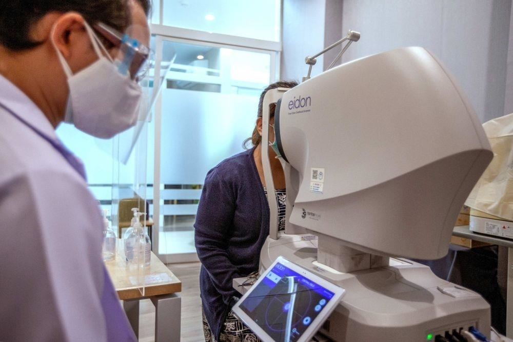 △2022年2月14日,在泰國曼谷詩里拉吉醫(yī)院,一名醫(yī)生操作5G自動驗光儀為患者檢查。2021年12月,5G智慧醫(yī)院項目在詩里拉吉醫(yī)院啟動。