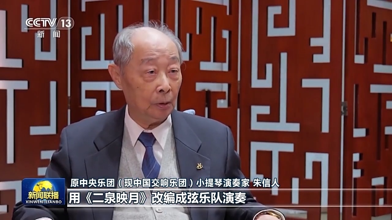 原中央樂團(tuán)(現(xiàn)中國(guó)交響樂團(tuán))小提琴演奏家 信人:1973年我們是用《二泉映月》改編成弦樂隊(duì)演奏,他們聽了以后非常喜歡這首作品,當(dāng)場(chǎng)就要總譜,他們準(zhǔn)備演。他們也看了我們的樂器,有的當(dāng)場(chǎng)就把自己的小號(hào)送給我們了。音樂大家都是融合的。