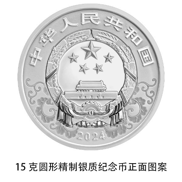 15克圓形銀質(zhì)紀(jì)念幣為精制幣,含純銀15克,直徑33毫米,面額5元,成色99.9%,最大發(fā)行量300000枚。
