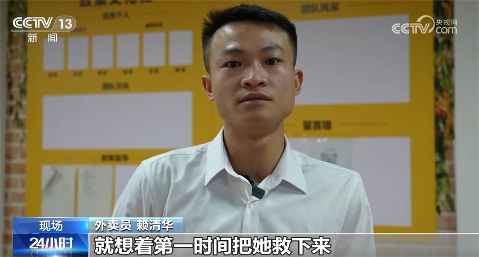 外賣員 賴清華:就想著第一時(shí)間把她救下來,我覺得換做任何一個(gè)人當(dāng)時(shí)也會(huì)這樣做,伸一把援手。