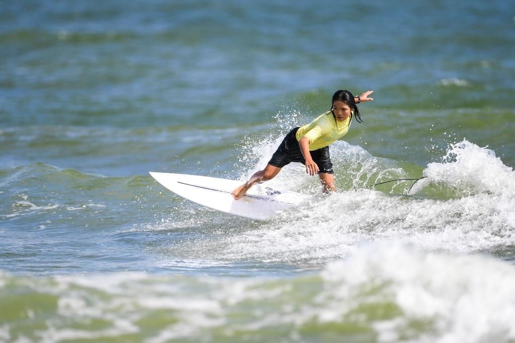 7月12日,第一屆全國學(xué)生(青年)運動會沖浪項目女子短板決賽在廣西北海市舉行。新華社記者 曹祎銘 攝