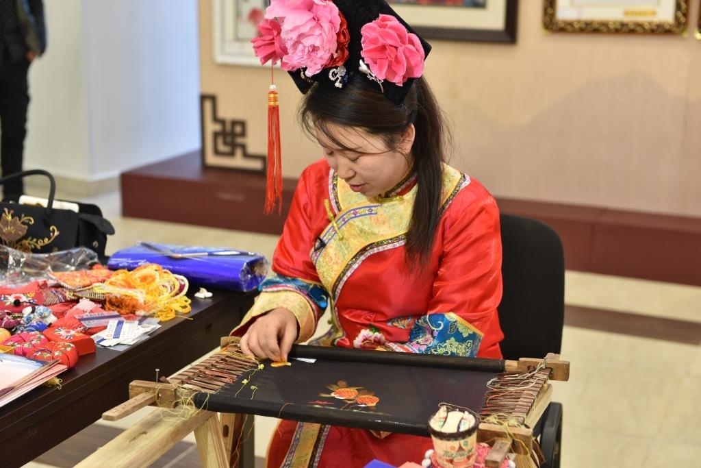 11月10日,尹艾風(fēng)的刺繡作品在2023黃河非遺大展上展示。(李艾明 攝)