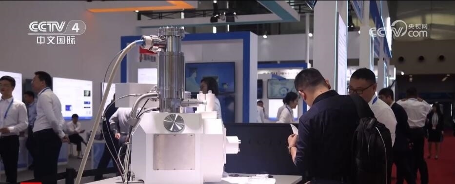 中國科學院參展單位負責人 王高峰:在我們的材料研究以及表面表征方面,能發(fā)現(xiàn)更小的缺陷,我們現(xiàn)在看到的是一個半導體芯片的微觀形貌。通過這個儀器,我們可以看到它的一些表面缺陷。這也是半導體生產(chǎn)工藝過程中非常重要的一個檢測手段。