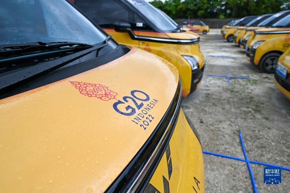 這是2022年11月12日在印度尼西亞巴厘島二十國集團(tuán)(G20)領(lǐng)導(dǎo)人第十七次峰會(huì)主會(huì)場拍攝的五菱新能源車。新華社記者 徐欽 攝