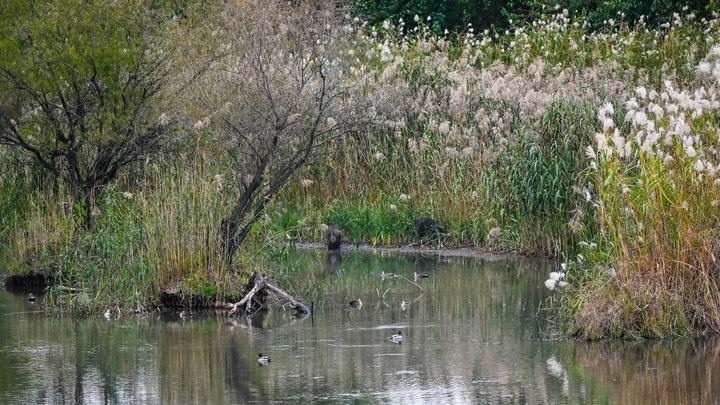 野豬和水鳥生活在長江新濟(jì)洲(11月13日攝)。記者 季春鵬 攝