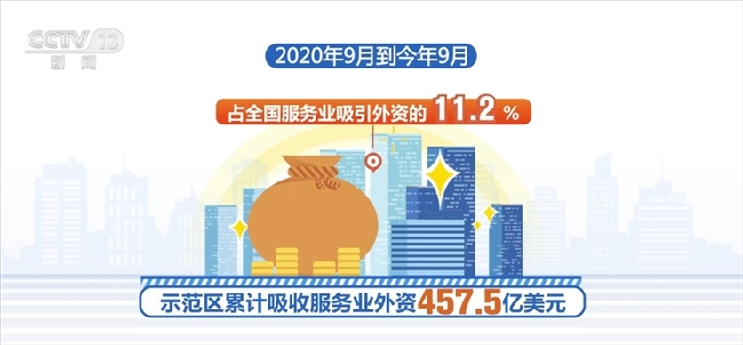 2020年9月到今年9月,示范區(qū)累計(jì)吸收服務(wù)業(yè)外資457.5億美元,占全國服務(wù)業(yè)吸引外資的11.2%;今年上半年,示范區(qū)服務(wù)業(yè)增加值占北京市地區(qū)生產(chǎn)總值比重達(dá)85.9%。