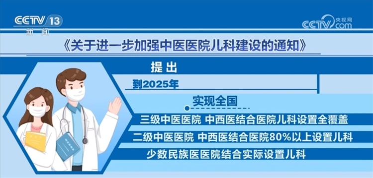 ?????? 《通知》提出,中醫(yī)醫(yī)院應(yīng)根據(jù)當(dāng)?shù)厝丝谝?guī)模及兒童中醫(yī)藥服務(wù)需求,設(shè)置兒科門診、病房床位,配備兒科醫(yī)師。二級(jí)公立中醫(yī)醫(yī)院應(yīng)普遍開(kāi)設(shè)兒科門診,三級(jí)公立中醫(yī)醫(yī)院應(yīng)開(kāi)設(shè)兒科病房,有條件的三級(jí)中醫(yī)醫(yī)院可設(shè)置兒科急診,國(guó)家中醫(yī)兒科優(yōu)勢(shì)??茟?yīng)設(shè)置兒童重癥監(jiān)護(hù)室。到2025年,實(shí)現(xiàn)全國(guó)三級(jí)中醫(yī)醫(yī)院、中西醫(yī)結(jié)合醫(yī)院兒科設(shè)置全覆蓋,二級(jí)中醫(yī)醫(yī)院、中西醫(yī)結(jié)合醫(yī)院80%以上設(shè)置兒科,少數(shù)民族醫(yī)醫(yī)院結(jié)合實(shí)際設(shè)置兒科。
