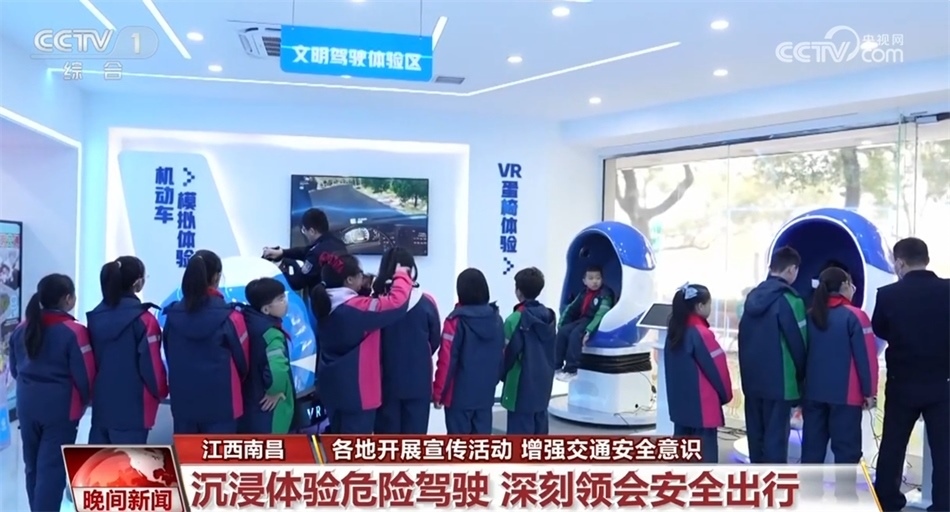在江西南昌公安交通治理體驗(yàn)中心,來(lái)自南昌市郵政路小學(xué)的同學(xué)們?cè)诿窬膸ьI(lǐng)下,開(kāi)展了一堂別開(kāi)生面的交通安全課。大家戴上VR設(shè)備,通過(guò)機(jī)動(dòng)車模擬駕駛、交通事故模擬裝置等,沉浸式體驗(yàn)了酒駕醉駕、超速等交通違法行為的場(chǎng)景。晃動(dòng)的座椅給同學(xué)們帶來(lái)了事故撞擊的震感,旋轉(zhuǎn)的設(shè)備更是讓同學(xué)們身臨其境地感受到酒后駕駛的眩暈。
