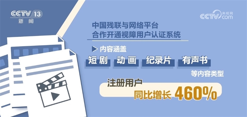 數(shù)據(jù)顯示,中國殘聯(lián)與網(wǎng)絡(luò)平臺(tái)合作開通視障用戶認(rèn)證系統(tǒng)一年以來,無障礙影視作品已超2000部(集),同比增長超400%,內(nèi)容涵蓋短劇、動(dòng)畫、紀(jì)錄片、有聲書等內(nèi)容類型,注冊用戶同比增長460%。