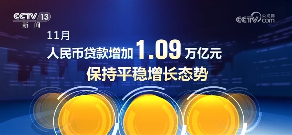 11月當(dāng)月人民幣貸款增加1.09萬(wàn)億元,保持平穩(wěn)增長(zhǎng)態(tài)勢(shì)。