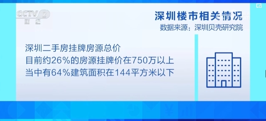 深圳貝殼研究院的數(shù)據(jù)顯示,從深圳二手房掛牌房源的總價來看,目前約26%的房源掛牌價在750萬以上,這部分房源當中有64%是建筑面積在144平方米以下的,換算之后約17%的掛牌房源是這次普通住房標準調(diào)整的直接受益者。