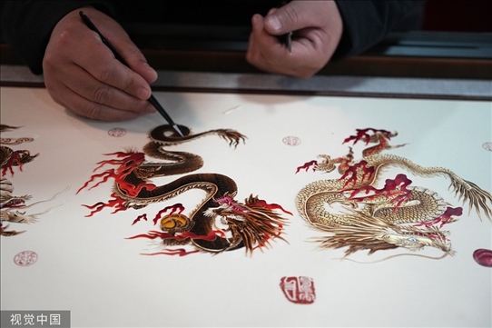 河南周口:非遺傳承人創(chuàng)作《九龍賀歲圖》蘆葦畫(huà),形態(tài)各異活靈活現(xiàn)。