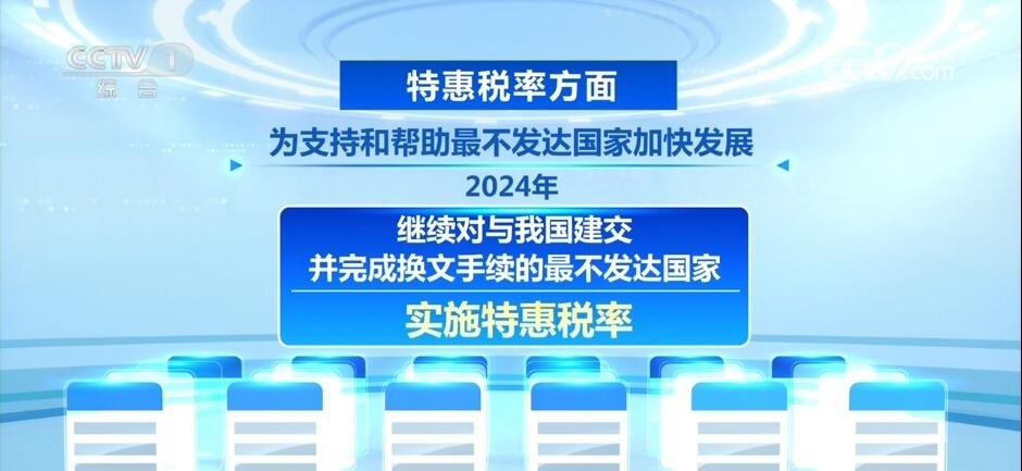 此外,在特惠稅率方面,為支持和幫助最不發(fā)達(dá)國家加快發(fā)展,2024年繼續(xù)對(duì)與我國建交并完成換文手續(xù)的最不發(fā)達(dá)國家實(shí)施特惠稅率。