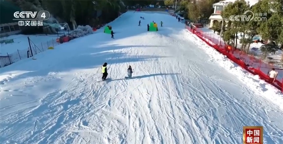 在連云港東海森林溫泉滑雪場,記者看到,100多米長的滑雪坡道頂峰處,許多游客在雪道上來回穿梭,體驗著滑雪運動帶來的樂趣,感受著別樣的“速度與激情”。