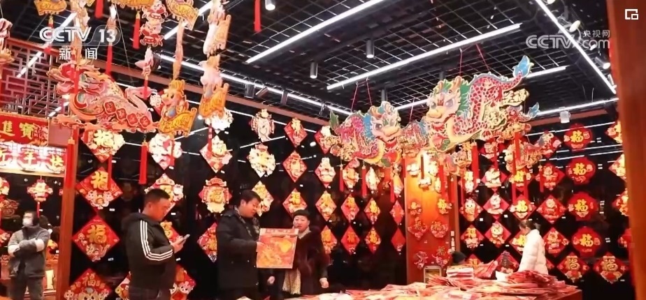 在浙江義烏國(guó)際商貿(mào)城,來(lái)自全國(guó)各地的采購(gòu)商們抓緊選購(gòu)著年貨。市場(chǎng)里的龍?jiān)禺a(chǎn)品頗受客商們歡迎,對(duì)聯(lián)、年畫(huà)、福字、紅包等產(chǎn)品,將從浙江義烏發(fā)往全球各地。