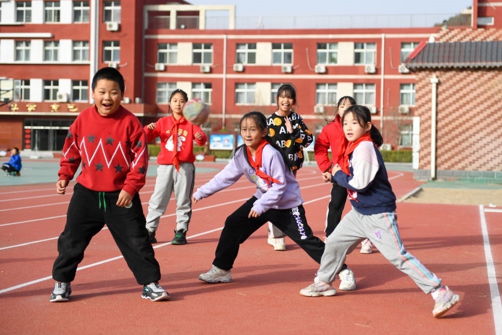 北京市門頭溝妙峰山民族學校的學生們在上體育課(12月6日攝)。新華社記者 鞠煥宗 攝